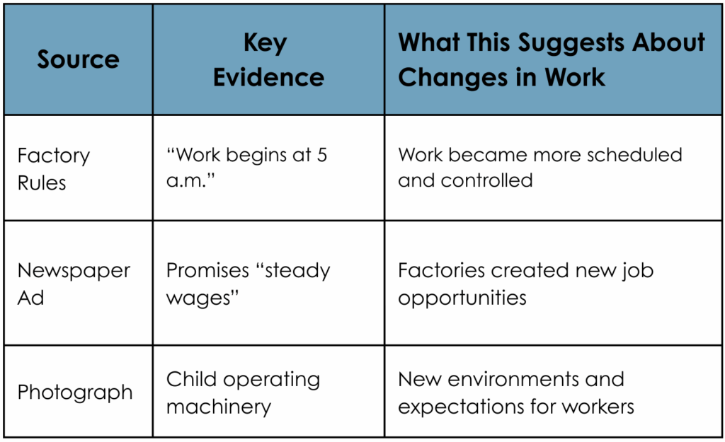 - what claim they can make about how work was impacted during the Industrial Revolution;